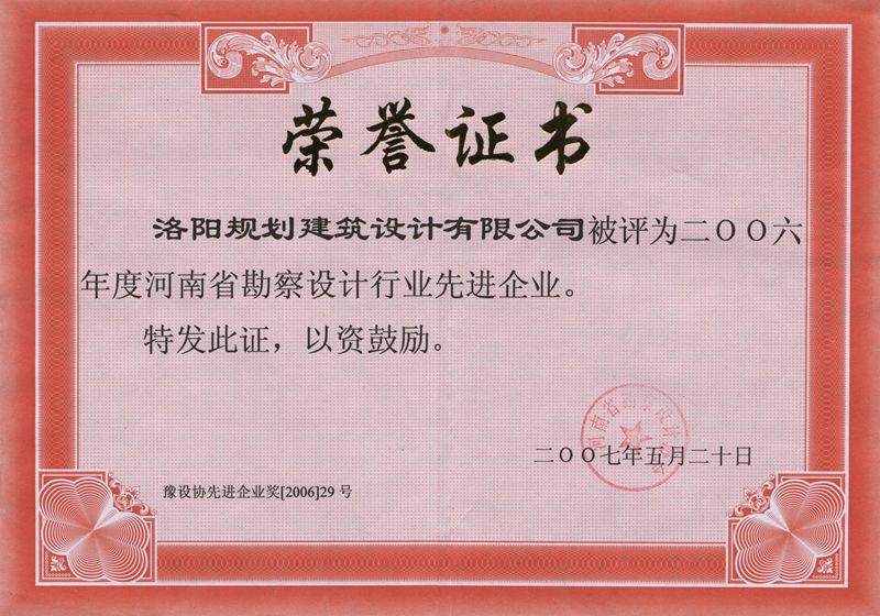 2006年省勘察設(shè)計(jì)行業(yè)先進(jìn)企業(yè)