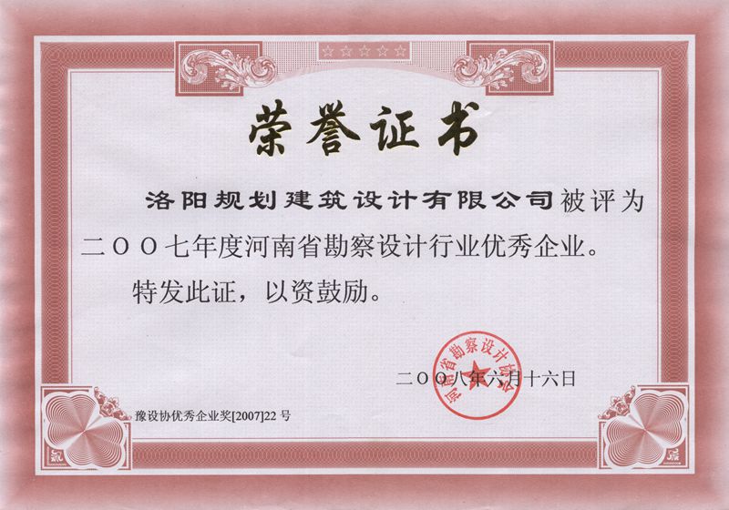 2007省勘察設(shè)計(jì)行業(yè)優(yōu)秀企業(yè)