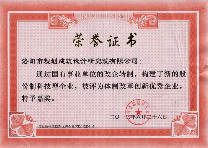 2012體制改革創(chuàng)新優(yōu)秀企業(yè)