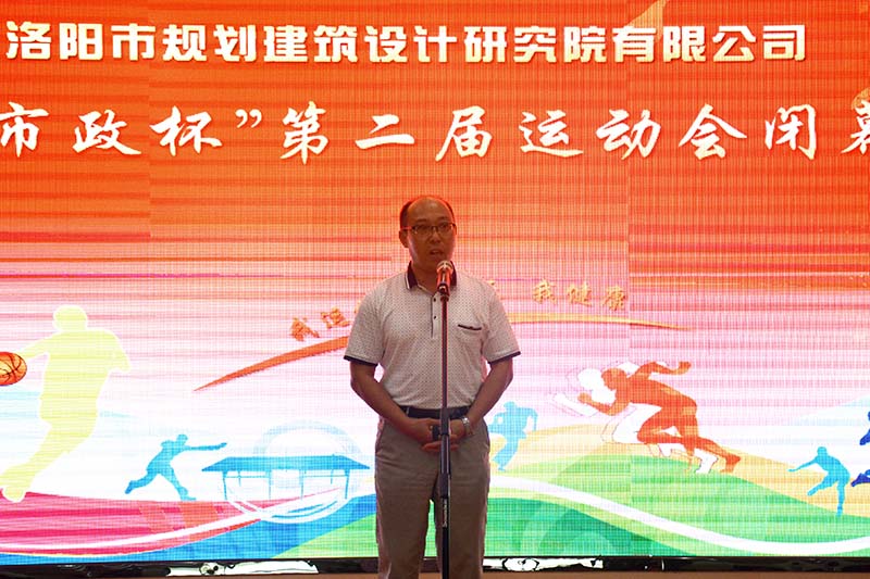 公司副董事長、總經(jīng)理曹紅普致閉幕詞,他表示,此次運動會運動員們都充分發(fā)揚了團結(jié)拼搏、勇創(chuàng)佳績的運動精神,展現(xiàn)出了良好的競技水平,賽出了風格,賽出了水平。同時感謝洛陽市城鄉(xiāng)規(guī)劃局對本屆運動會的參與與支持,與規(guī)劃院的員工們切磋技藝,增進友誼。并祝賀在本次運動會中取得優(yōu)異成績的各參賽隊伍和運動員,鼓勵大家再接再厲,將這種不懈拼搏、勇攀高峰的精神貫徹到今后的工作中,投身到推動企業(yè)更好更快的發(fā)展進程中,使公司這個大家庭更加團結(jié)、和諧。規(guī)劃局黨總支專職副書記申軍偉也作了簡短講話,他對本次運動會的圓滿落幕表示祝賀,同時感謝規(guī)劃院提供了這樣一個平臺,能夠與大家增進感情,并希望以后能夠更多的參與此類活動。