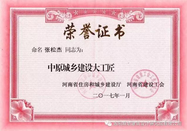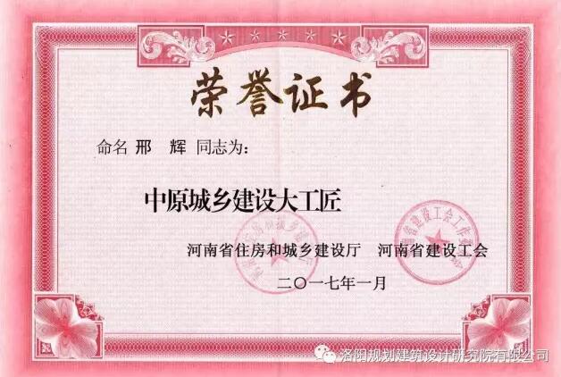 近日,河南省住房和城鄉(xiāng)建設(shè)廳、河南省建設(shè)工會(huì)公布了“關(guān)于命名2016年中原城鄉(xiāng)建設(shè)大工匠”的評選結(jié)果,我公司第一城鄉(xiāng)規(guī)劃院院長邢輝、第二建筑設(shè)計(jì)院院長張松杰兩位同志獲此殊榮。