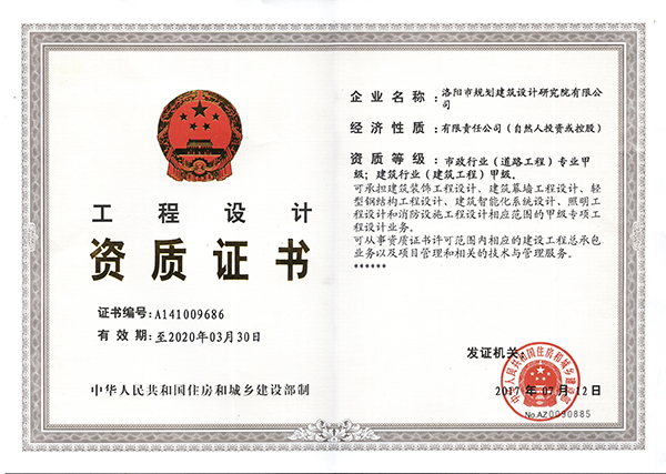 公司市政工程設(shè)計專業(yè)1993年經(jīng)中華人民共和國建設(shè)部批準(zhǔn)獲得市政工程設(shè)計乙級資質(zhì),幾十年來,公司市政工程設(shè)計專業(yè)為洛陽市和周邊地區(qū)的經(jīng)濟建設(shè)作出了較大的貢獻。近年來,公司領(lǐng)導(dǎo)審時度勢推出了大市政的發(fā)展戰(zhàn)略,努力打造一流市政設(shè)計隊伍、創(chuàng)造一流品牌、實施一流的服務(wù)。在注重市政工程設(shè)計產(chǎn)品的質(zhì)量和市政設(shè)計業(yè)務(wù)發(fā)展的同時,還注重專業(yè)人才梯隊建設(shè),吸收了包括研究生在內(nèi)的大批專業(yè)技術(shù)人才。并嚴(yán)格按照ISO9001《質(zhì)量管理體系》要求狠抓市政工程設(shè)計產(chǎn)品質(zhì)量,市政工程設(shè)計成果連續(xù)多年獲省級獎項,為河南省特別是洛陽的城市建設(shè)和經(jīng)濟發(fā)展作出了突出的貢獻。