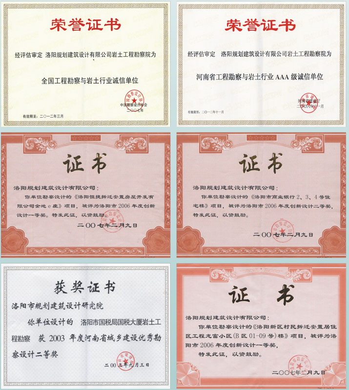 部分獲獎(jiǎng)項(xiàng)目證書(shū)
